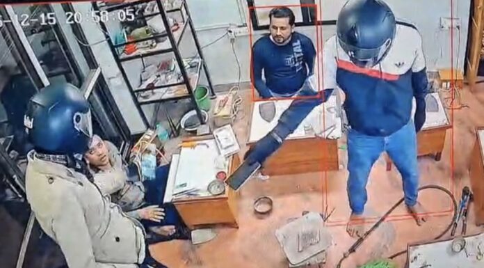 एक बदमाश जुता पहनकर दुकान में आ रहा था तभी दुकान में काम करने वाले एक कारिगर ने जुते बाहर उतारने को कहा तो बदमाश ने बाहर जाकर उतार दिए। उसके बाद दुकान में घुस कर पिस्टल से डराने की कोशिश की। हालांकि बदमाश दुकान में से कुछ भी लेकर भागने में सफल नहीं हो सके।