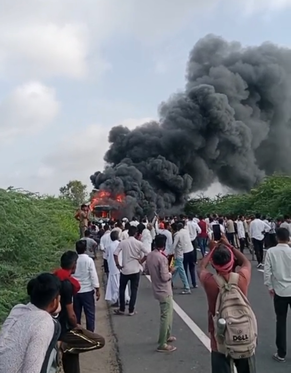 हादसे के बाद हाईवे पर लंबा जाम लग गया है। दोनों तरफ बड़ी संख्या में वाहन भी पहुंच गए। हादसे की लपेटे में काफी ऊंचाई तक उठी थी। हादसे को देखकर आसपास के ग्रामीण भी बड़ी संख्या में पहुंच गए।